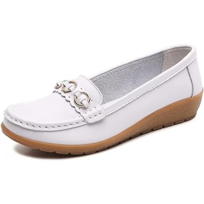 Women's Leather Wedge Moccasins Pumps Boat Shoes Casual Cushion Driving Slip-Ons