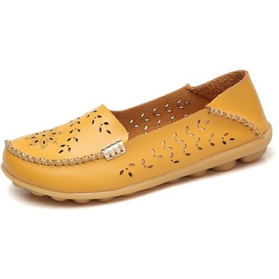 Women's Classic Genuine Leather Casual Loafer Cute Slip-On Fashion Walking Shoe