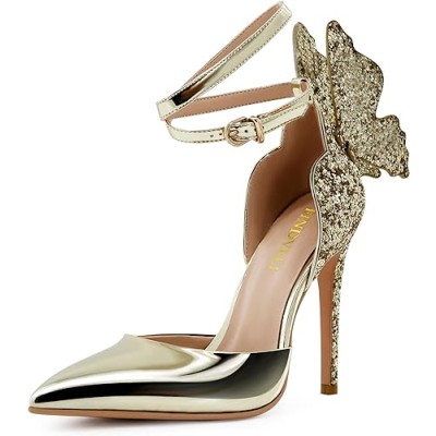 old High Heels Butterfly Back Sexy Stiletto Pumps Closed Toe Sparkly Ankle Strap Heels Sandals Dress Shoes for Women