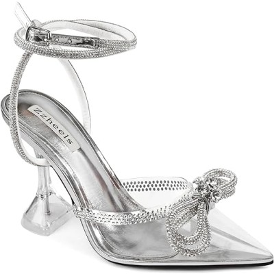 Women Bowknot Clear Heels Crystal Slingback Sandals Lace-up Shoes for Party Dating