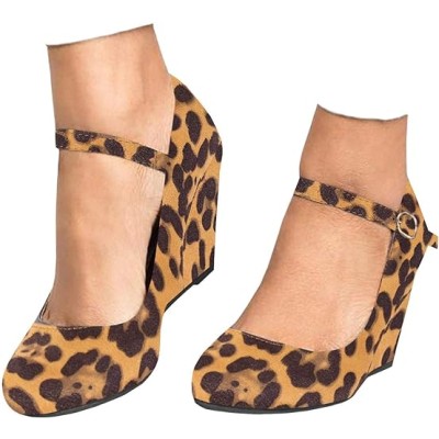Womens Wedge Shoes Mary Jane Pumps Ankle Strap High Heel Round Toe Office Work Dress Shoes