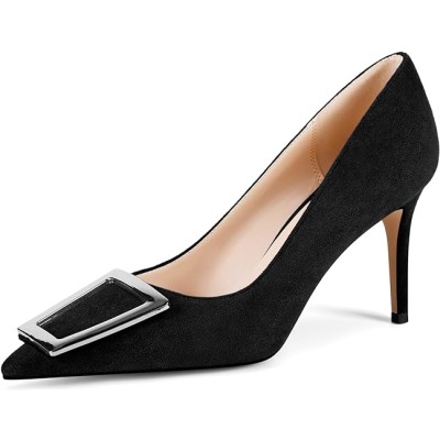 Women Pointed Toe High Heels Trapezoid Metal Buckle Pumps Dress Party Shoes