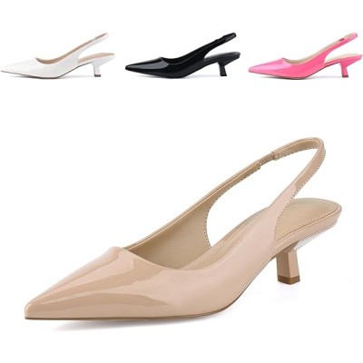 Women's Slingback Kitten Heel Pointed Toe Dress Pumps Shoes