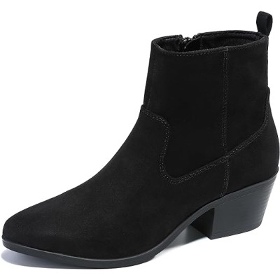 Women's Chunky Low Heel Ankle Boots Classic Chunky Heel Boots Pointed Toe Side Zipper Booties Length of Shoe 25CM