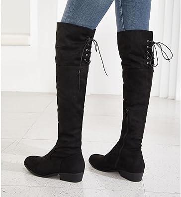 Women's Thigh High Fashion Boots Over The Knee Black Low Flat Heel Boots