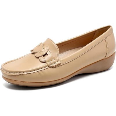 Women's Leather Wedge Moccasins Pumps Boat Shoes Casual Cushion Driving Slip-Ons