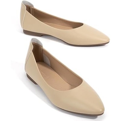 Women's Casual Pointed Toe Ballet Comfort Soft Leather Slip On Cowhide Flats Shoes