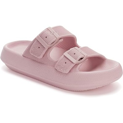Slides for Women Men Double Buckle Adjustable Thick Sole Pillow Slippers Bathroom Sandals